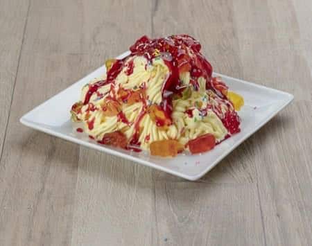 Gummibärchen, bunte Streusel, Erdbeersauce, 2 Kugeln Vanilleis, Schlagsahne (zus. Kiddybox-Kindergeschenkset optional) NCUVE